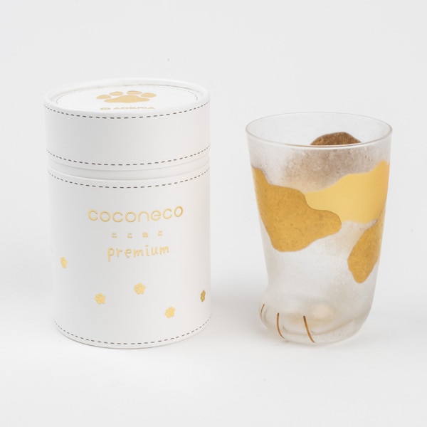 This playful glass captures the charm of a calico cat with its frosty finish and gold markings. Shaped like a feline paw and detailed with a subtle gold paw print on the base, it transforms depending on your drink—milk evokes a white cat, while coffee gives the look of a black one.