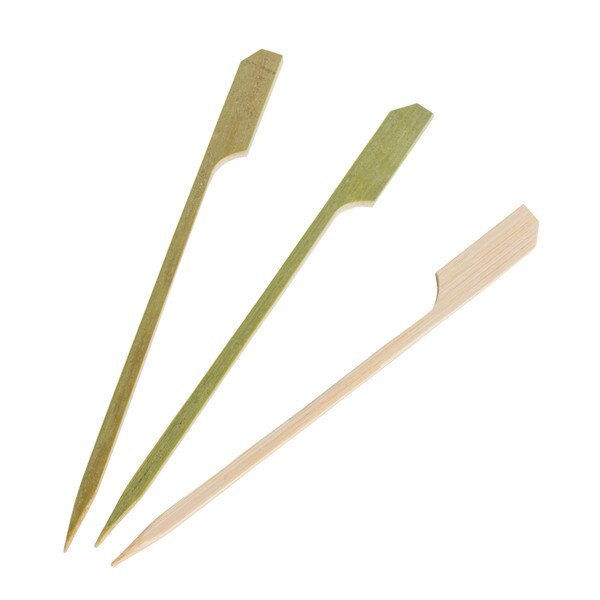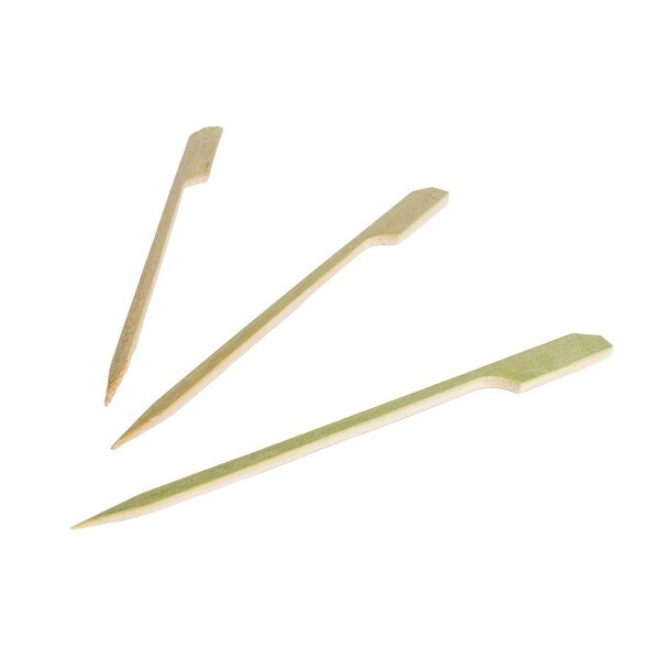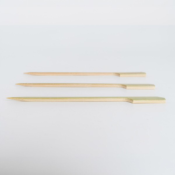 Teppo Gushi take their name from the Japanese word "Teppo" meaning rifle. These decorative skewers are available in a variety of sizes to meet your needs. The flat shape and sharp point makes these skewers ideal for barbecues and grilling, hors d'oeuvres and sandwiches. The larger sizes are the perfect length for grilling tofu, meats, vegetables or shrimp, while smaller sizes are great for serving finger foods. Available in green.